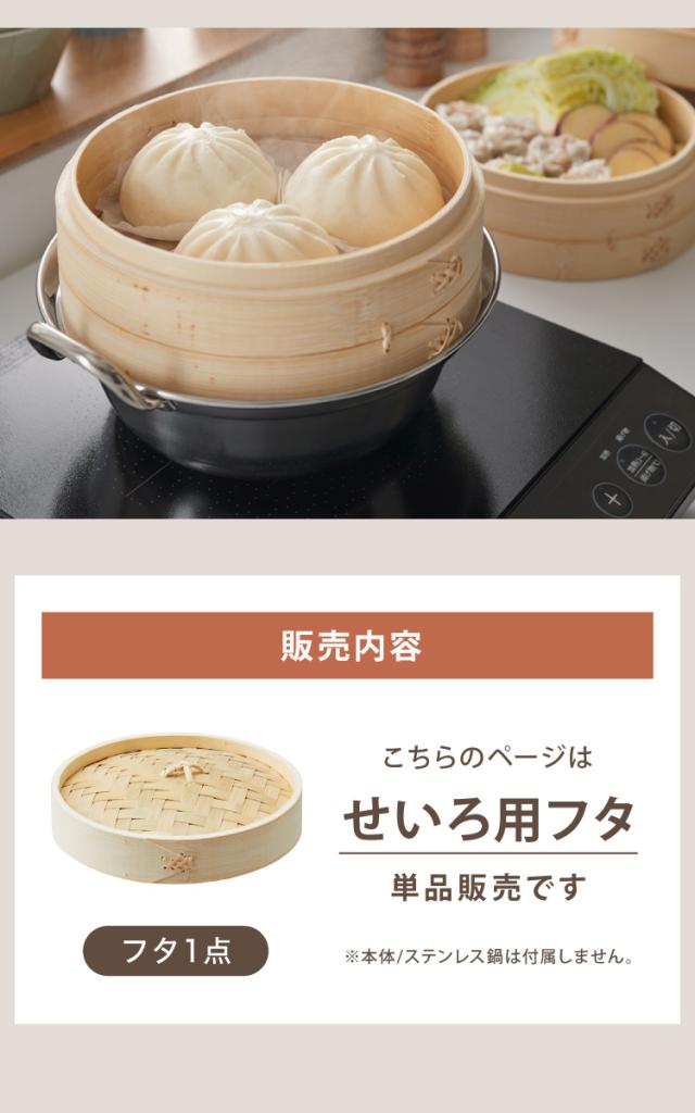 ■初めてご使用になる際や、セイロが乾燥している場合には、ご使用前に水に漬けて水分を吸わせてからお使い下さい。