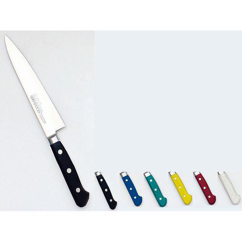 ■スタンダード 抗菌 プラ柄ツバ付シリーズ■※■材質 刀身:モリブデンバナジウム鋼 ハンドル:POM樹脂(耐熱温度150℃)・抗菌6色のカラーハンドルで、食材別に使い分けるのに便利 です。■・モリブデン鋼でサビに強く、耐久性に優れています。■※庖丁の表示サイズは、すべて刃渡り寸法となっております。■※抗菌