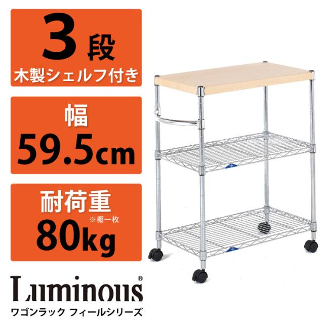 Luminous(ルミナス) ワゴンラック 木棚付きワゴン スチールラック スチール棚 キッチンワゴン メタルシェルフ 【送料無料】
