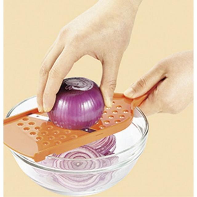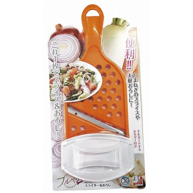 これ1枚でスライス&おろしたまねぎのスライスや大根おろしに!手をガードするホルダー付き