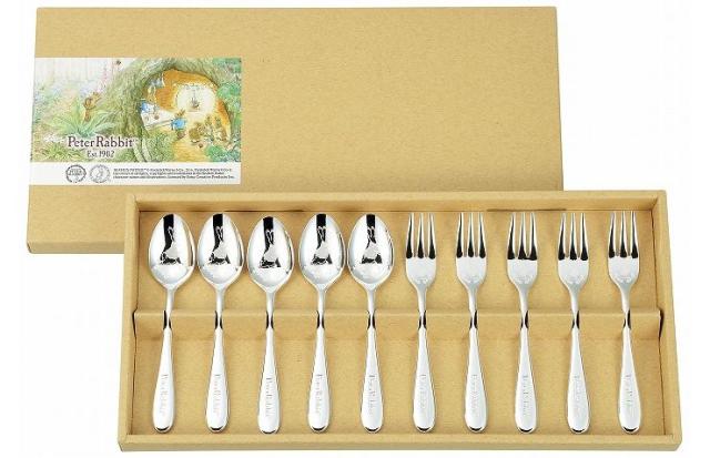 アサヒ ピーターラビット 皿中レーザー ティースプーン・ケーキフォーク【銀仕上】10本セット PR-0251 テーブルウェア キッチン 料理 食卓 調理器具 ギフト プレゼント