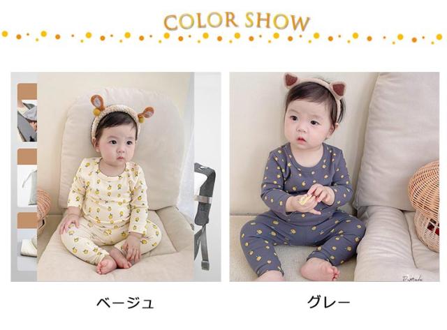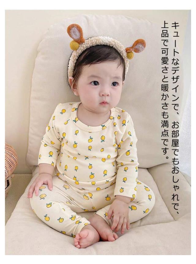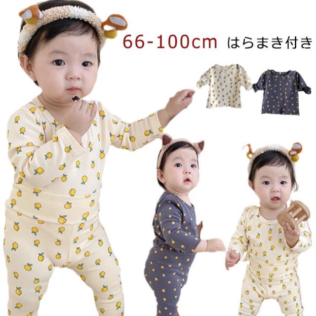 2点セット ベビーパジャマ 腹巻付き 上下セット 長袖 パジャマ 80 90 100 ベビー 寝具 セットアップ ベビー服 パジャマ ルームウェア ベビーパジャマ ベビールームウェア 室内着 お昼寝 総柄 バナナ 秋 冬