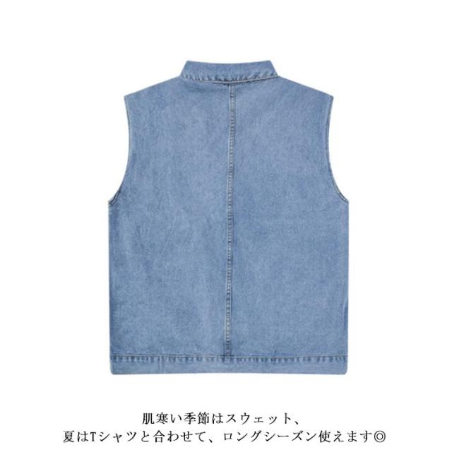 デニムジャケット ジャンパー Gジャン デニム ベスト メンズ 前開き フロントボタン ビッグポケット ノースリーブ 袖なし アウター カジュアル かっこいい 重ね着 レイヤード 着回し 大きいサイズ 体型カバー 春 秋