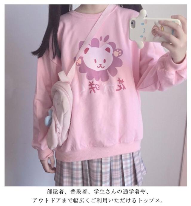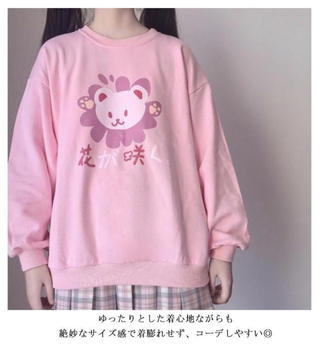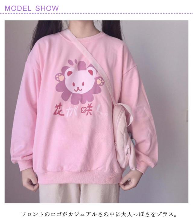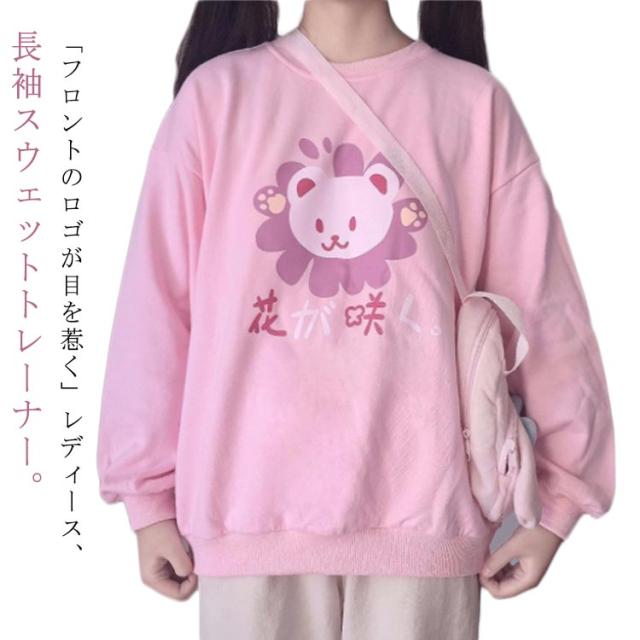 可愛い トレーナー レディース tシャツ 長袖 スウェット トップス パーカー プルオーバー ゆったり プリント おしゃれ 韓国 クルーネック 学生 通学 秋服 ピンク プリント 地雷系 サブカル系 原宿系 ストリート 春秋冬