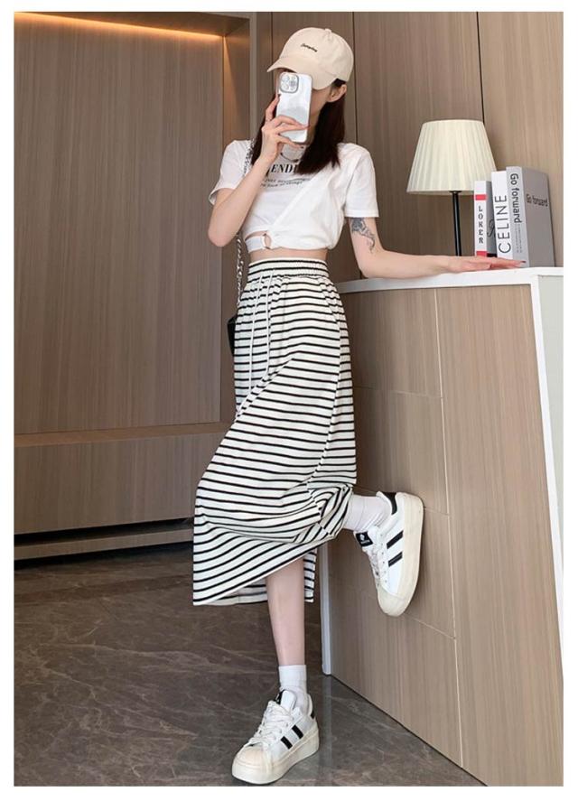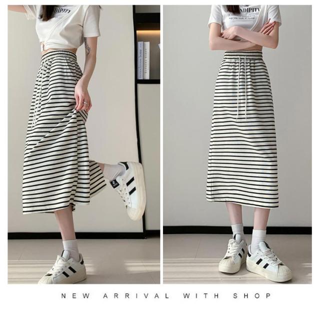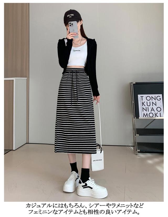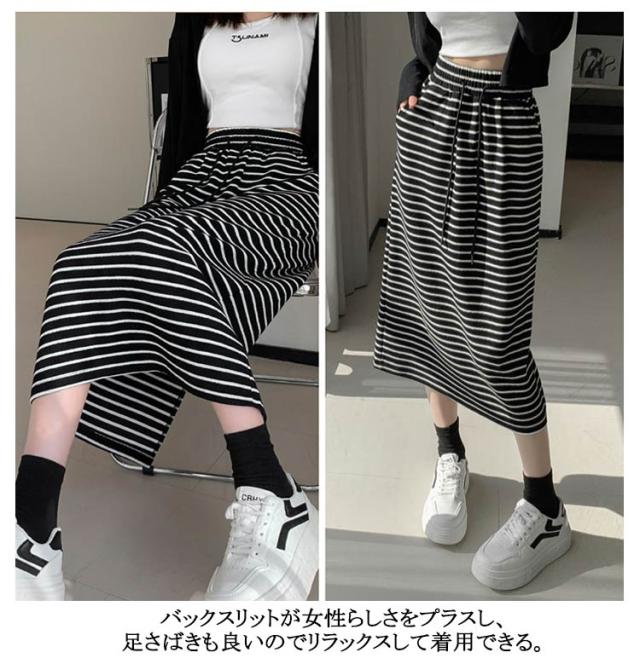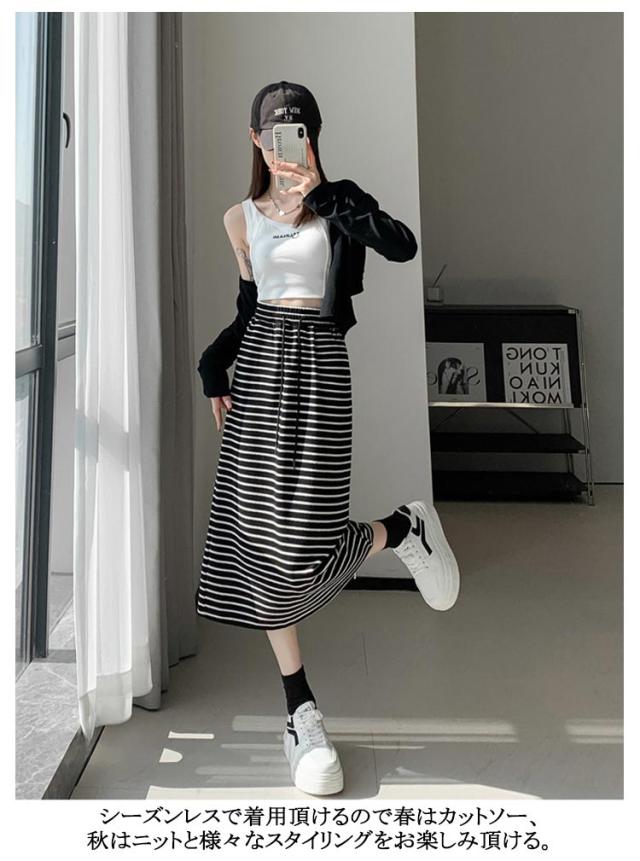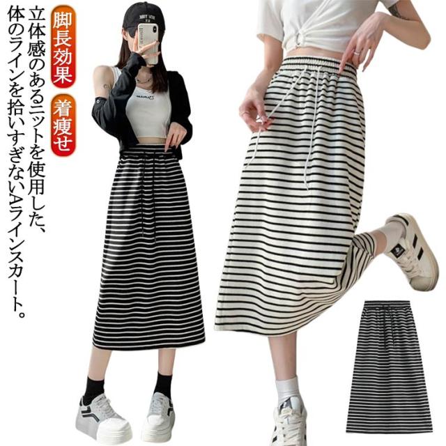スカート レディース ボーダー ロング丈 Aライン ハイウエスト ウエストゴム バックスリット ボーダースカート 伸縮性 ストレッチ性 脚長効果 細見え 着痩せ 春 秋 冬 保温 タイトスカート ロングスカート 大きいサイズ カジュアル キレイめ 体型カバー 送料無料