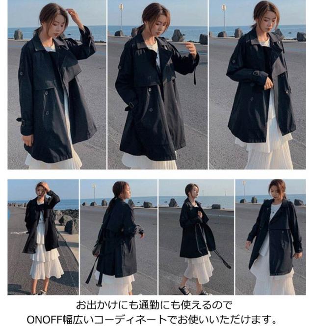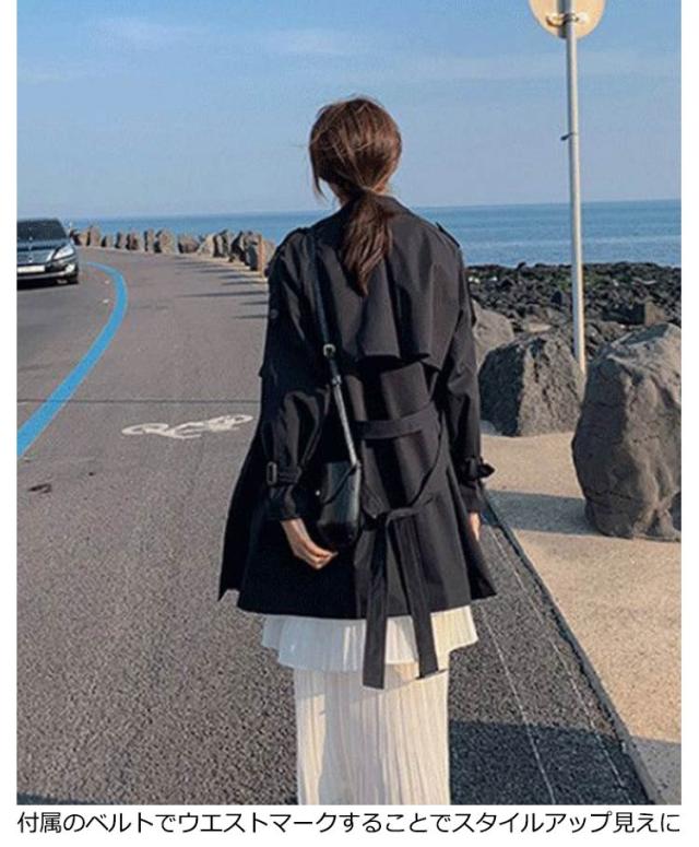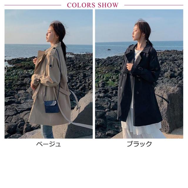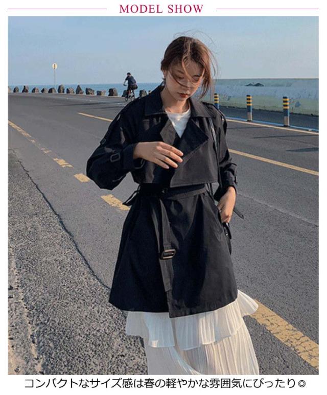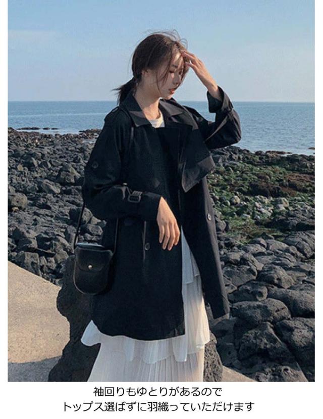 トレンチコート ミドル丈 レディース コート 春コート スプリングコート 薄手 春アウター 裏地付き ライトアウター きれいめ リクルート オフィス カジュアル 通勤 就活 仕事 低身長 ロングコート 春 秋 ジャケット ベージュ ブラック 黒 かわいい 【送無】