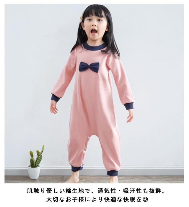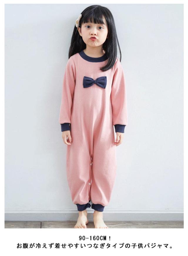 パジャマ 子供 つなぎ パジャマ キッズ ロンパース オールインワン 女の子 ルームウェア 春服 秋服 長袖 リボン オーバーオール パジャマ 子供服 綿 部屋着 つなぎ スナップボタン 女児 ベビー ジュニア 寝間着 寝冷え防止 おしゃれ かわいい 春 秋 冬 90-160cm