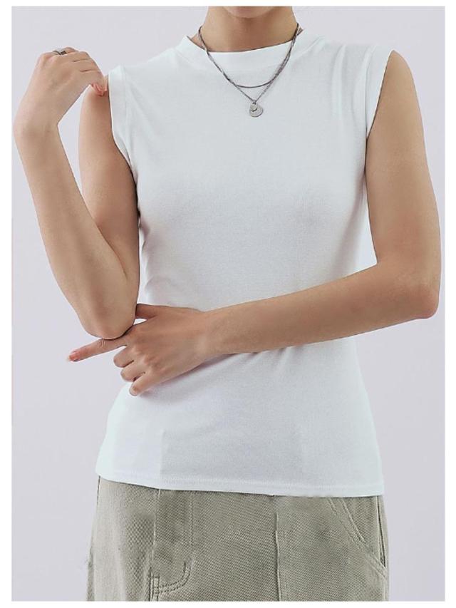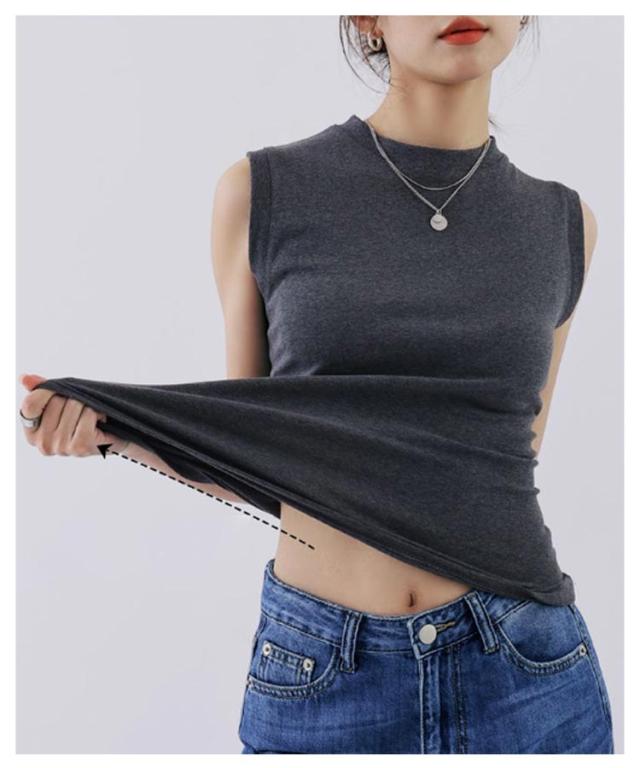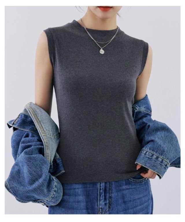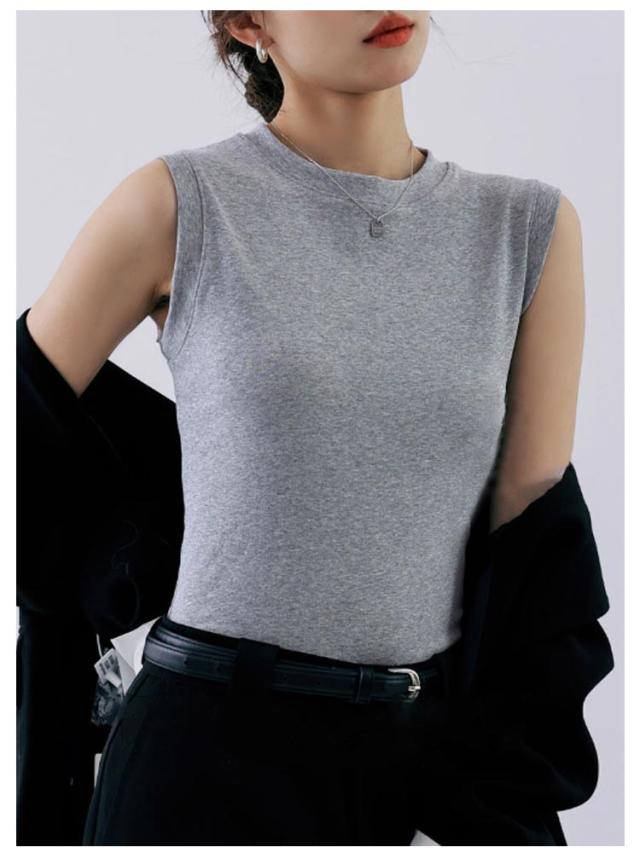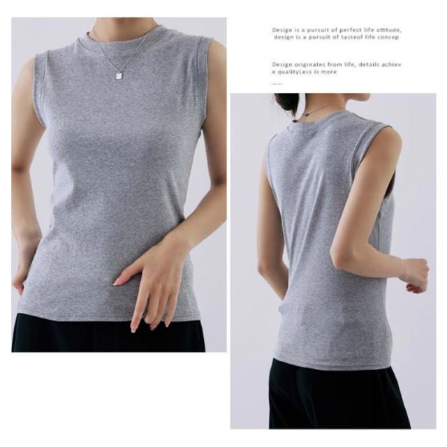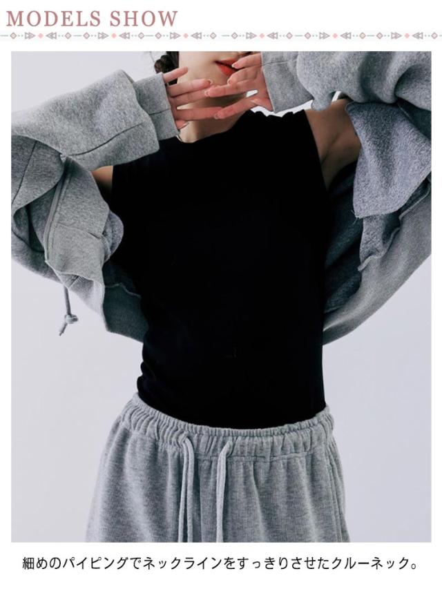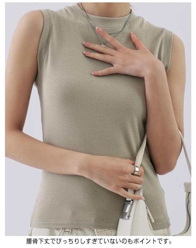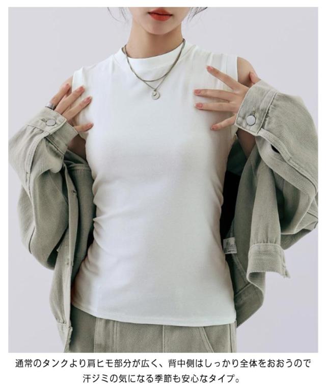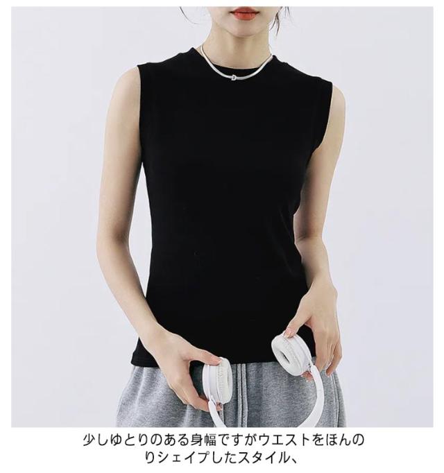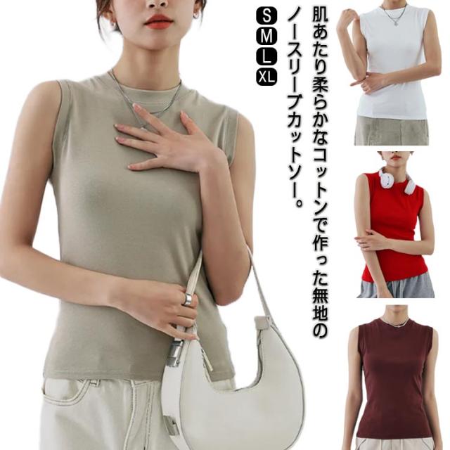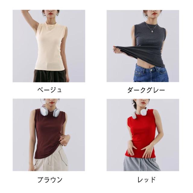 タンクトップ レディース 無地 クルーネック 綿混 インナー カットソー 下着 オフィス カジュアル おしゃれ 大きいサイズ 伸縮性 シンプル コーデ