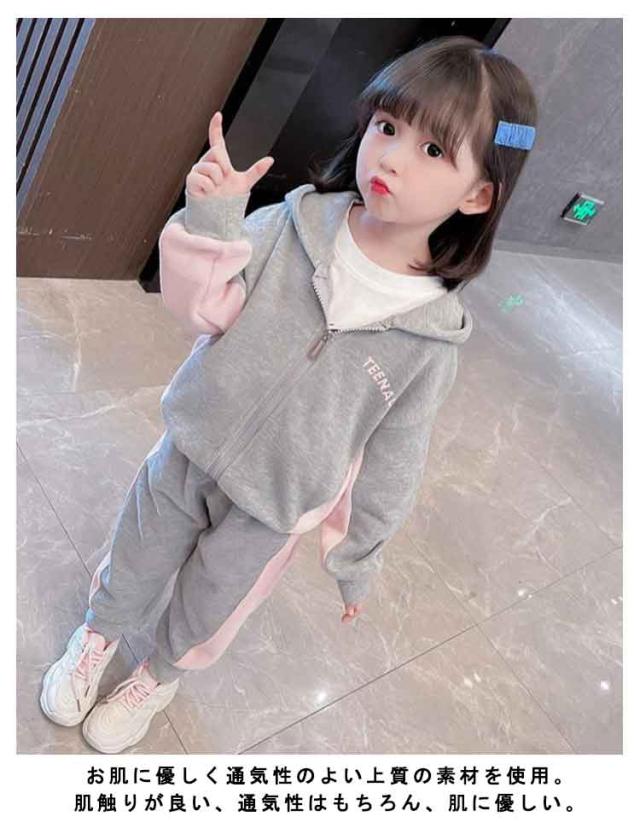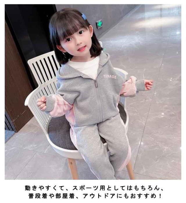 ジャージ 上下 子供服 スウェット2点セット フード付き 女の子 トレーニングウェア 長袖 長ズボン Tシャツ スポーツウェア キッズ 子供服運動着 春秋 送料無料 セットアップ 上下セット 長袖トレーナー 送料無料
