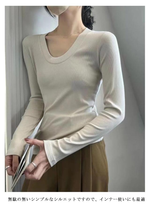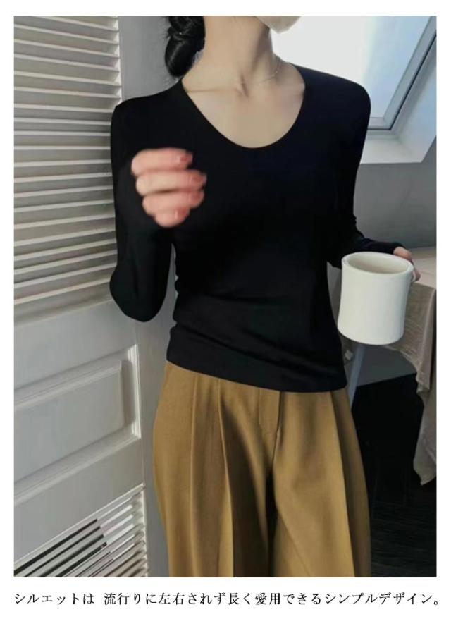 柔らか シンプル カットソー 婦人 肌着 Uネック インナー 深あき キレイめ 襟ぐり広め Tシャツ 肩開き 保温 ルームウェア ボートネック バレエネック 長袖 トップス お洒落 シルエット レディース あったか 部屋着 春 秋冬用 S M L XL 2XL 送料無料