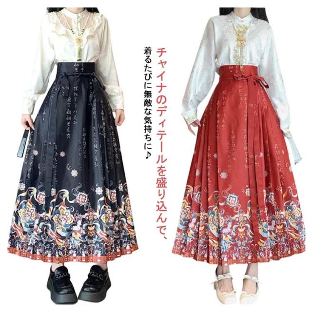 ラップスカート 巻きスカート チャイナドレス チャイナ服 中華風 レディース ロング丈 プリーツスカート タック フレアスカート オリジナル ボトムス チャイナ風 フェミニン ガーリー おしゃれ 春 夏