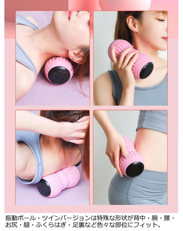 | USB充電式 3段階振動調整 自宅で簡単に筋膜リリースと筋肉ストレッチのセルフケアグッズ 運動後の筋膜リリースや毎日のストレッチに。 エクササイズ フィットネス ダイエット トレーニング ストレッチ 体幹運動 腹筋 筋トレ などに 振動ボール・ツインバージョンは特殊な形状が背中・腕・腰・お尻・腿・ふくらはぎ・足裏など色々な部位にフィット 3段階で調節できる振動(バイブレーション)機能があり、筋肉や筋膜などを刺激しリラックスさせます。 充電式コードレスなので手の届かない部位も利用可能。また、オフィスなどにも持ち運び自由 | |