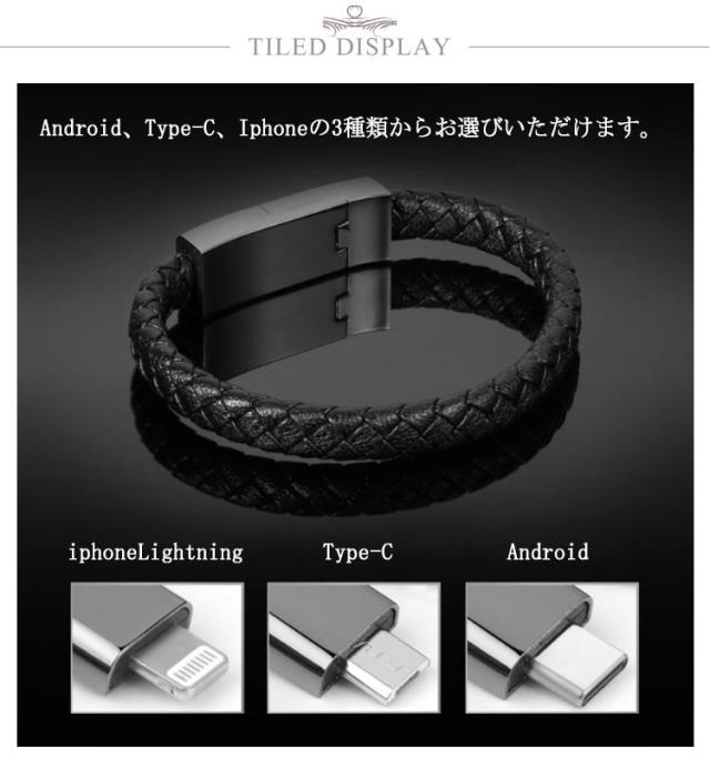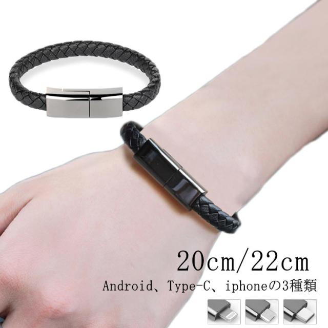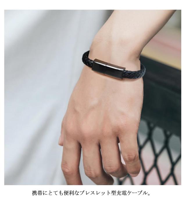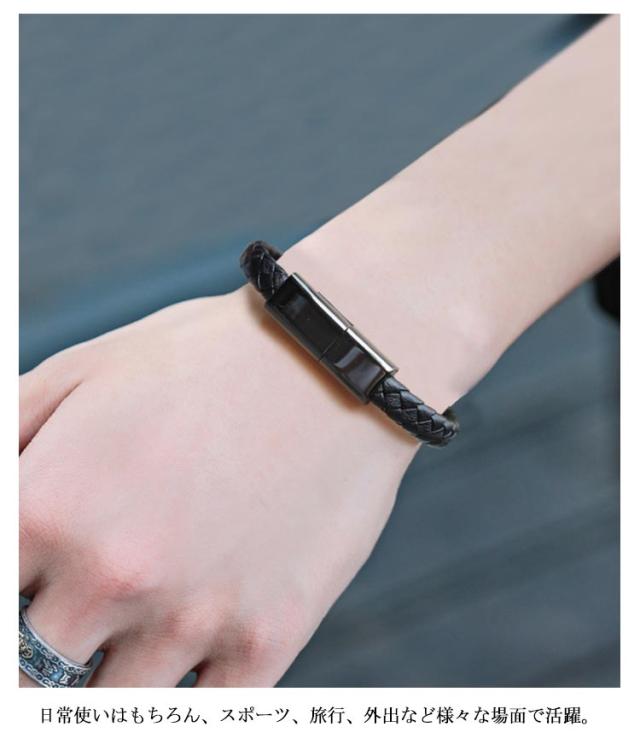 【送料無料】充電ケーブル 手首 腕アクセサリー ブレスレット TypeC ケーブル ブラック 黒 micro usb type-c ケーブル USB ケーブル Lightning ライトニング ケーブル iPhone ケーブル データ転送 充電器 多機能 携帯便利 編み模様 アクセサリー