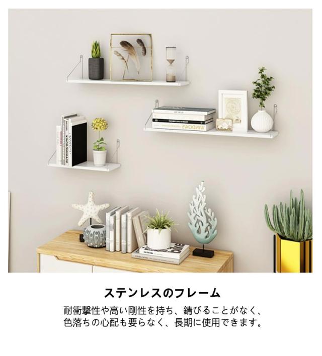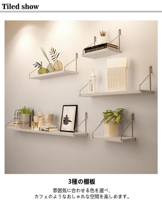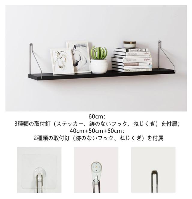 | 1.3種の棚板 雰囲気に合わせる色を選べ、カフェのようなおしゃれな空間を楽しめます。 2.ステンレスのフレーム 耐衝撃性や高い剛性を持ち、錆びることがなく、色落ちの心配も要らなく、長期に使用できます。 3.仕分けスペース高収納力 収納やディスプレイのための仕分けスペースが充実しています。 4.幅広い用途 フォトフレーム、本や鉢植えなど小物置きとした実用的な使い方も魅力的。 5.美しい棚板とファション感溢れるステンレスの組み合わせ。 家のリビング、玄関、洋室、和室はもちろん、カフェやバーなどあらゆるところで大活躍。 60cm:3種類の取付釘(ステッカー、跡のないフック、ねじくぎ)を付属; 40cm+50cm+60cm:2種類の取付釘(跡のないフック、ねじくぎ)を付属 | |