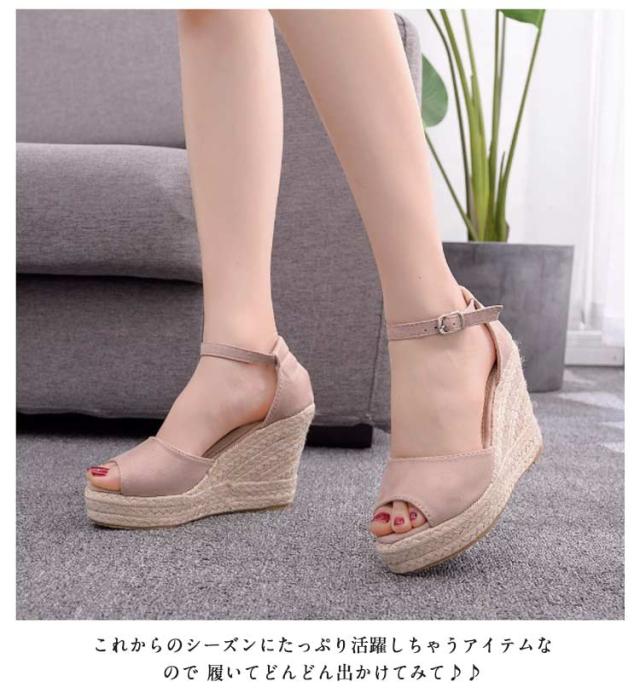 オープントゥアンクルストラップデニム×ウェッジソールサンダル エスパドリーユ ウェッジソールサンダル サンダル ウェッジソール パステルカラー ハイヒール 美脚 脚長効果 安定感 歩きやすい リゾート感 厚底 大人 レディース 女
