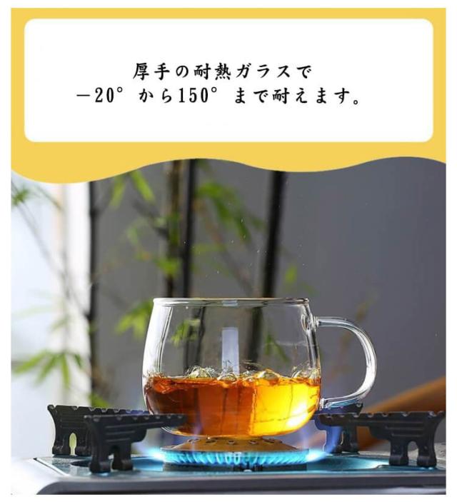 2個セット マグカップ コップ ガラスカップ ティーカップ 取っ手付き 耐熱 ガラス 広口 蓋付き ミルク コーヒー ジュース お茶 容器 電子レンジ 直火対応 カップ フィルター付き 350ml