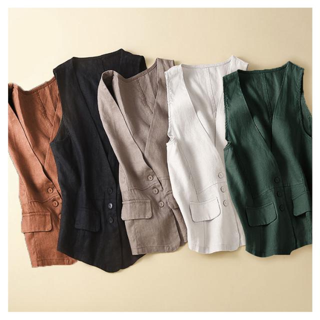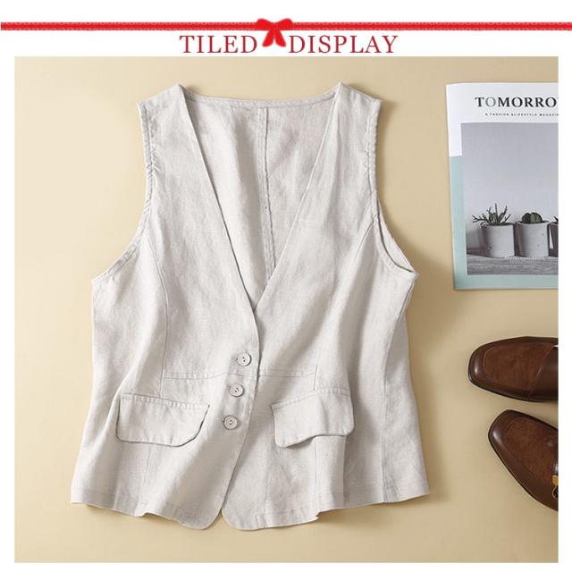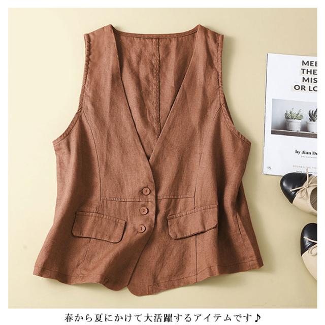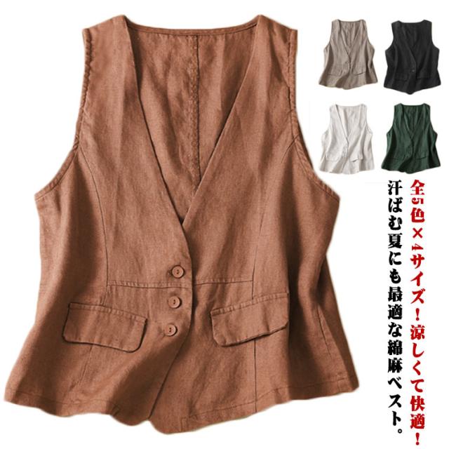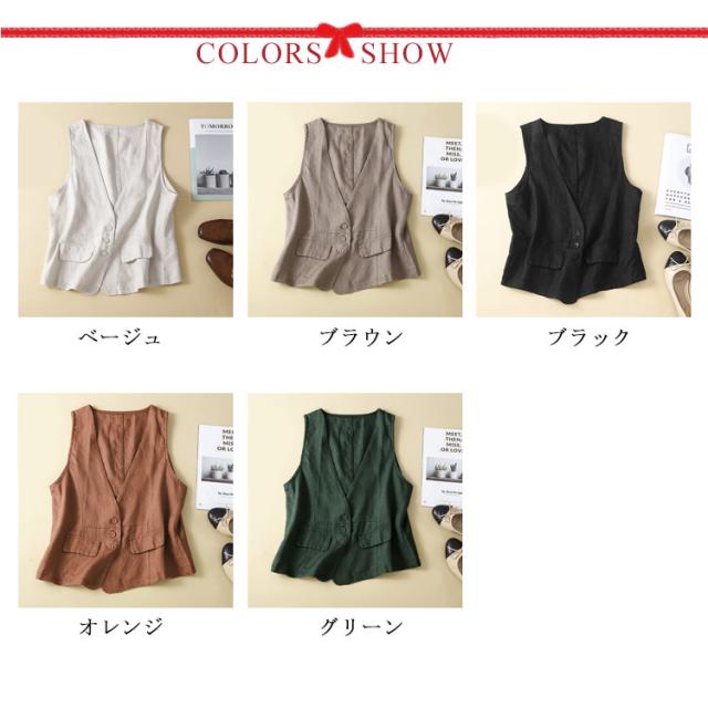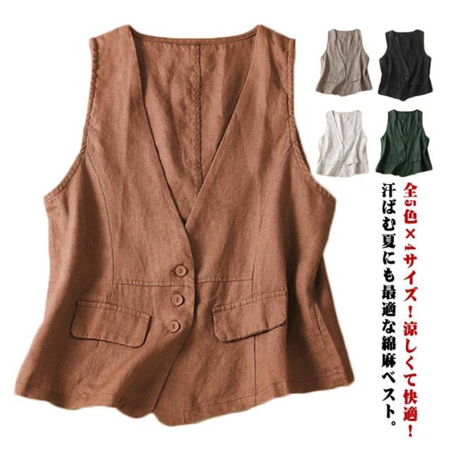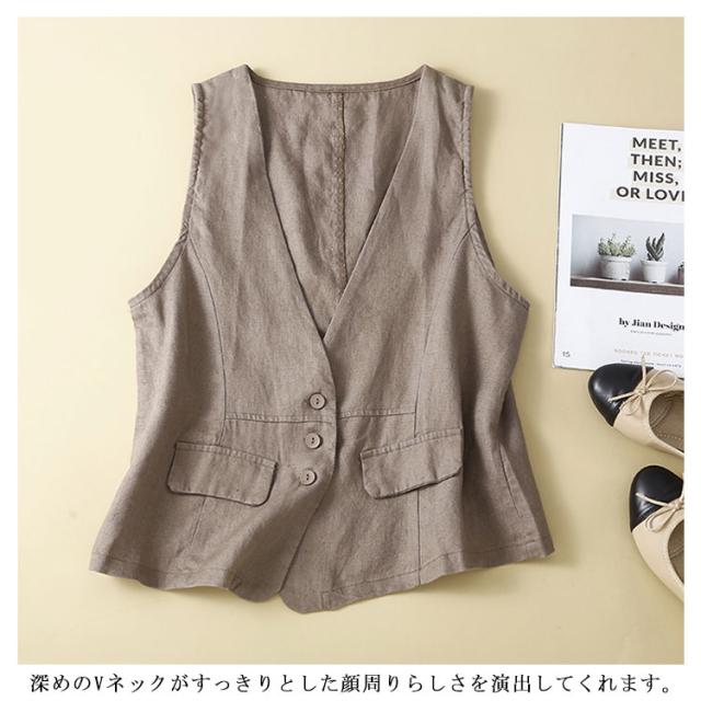 夏ベスト レディース 春夏 リネン ベスト 羽織り Vネック サマーカーディガン 薄手 リネンベスト ノースリーブ 羽織り オフィス カジュアル 重ね着 通勤 OL ナチュラル 30代 40代