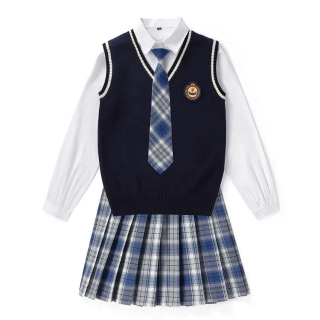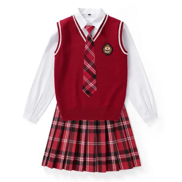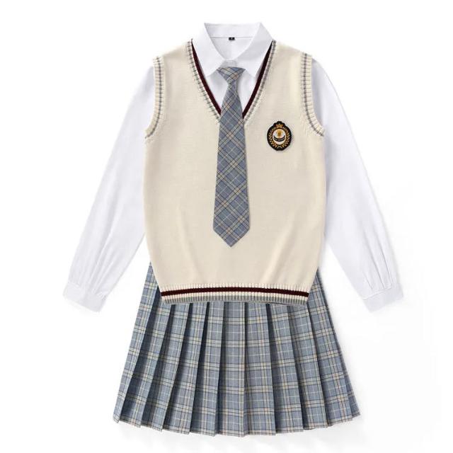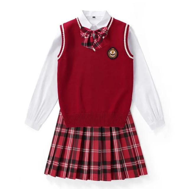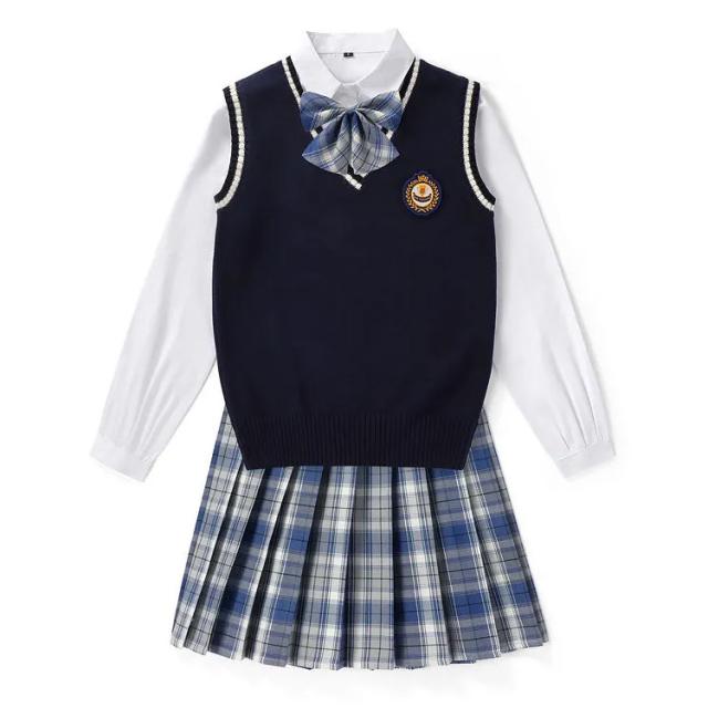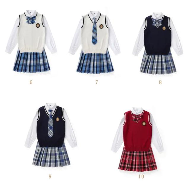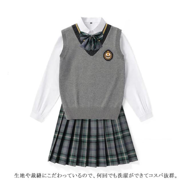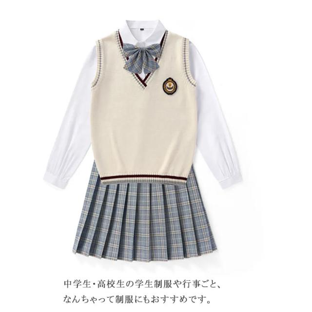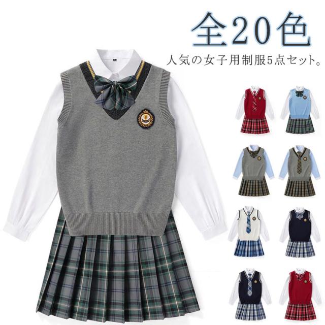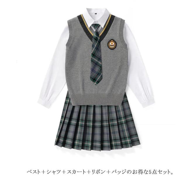送料無料 女子 制服 5点セット 女子高生 学生制服 ニットベスト 長袖シャツ チェックスカート リボン スクール 通学 学生服 卒業式 入学式 スーツ 女子 JK制服 上下セット 発表会 コスプレ衣装 仮装 コスチューム 可愛い 学園祭 オールシーズン