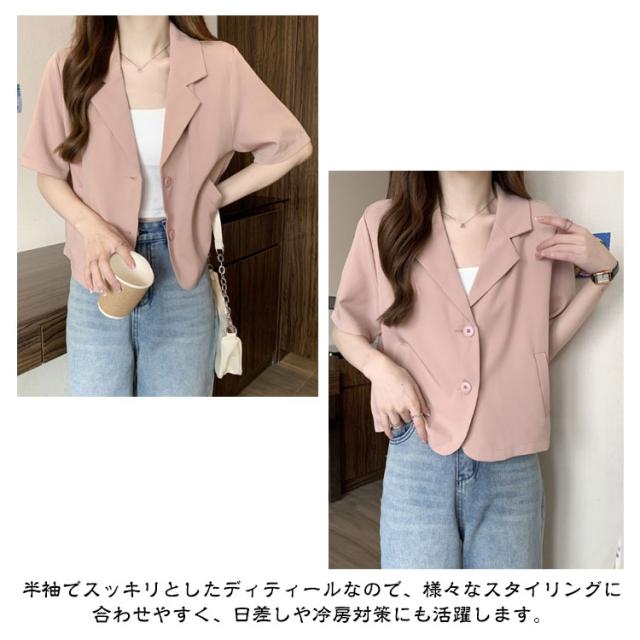 半袖 ジャケット レディース サマージャケット テーラードジャケット ショートジャケット 薄手 夏 スーツジャケット 開襟シャツ シャツジャケット 冷房対策 アウター トップス カジュアル 春夏秋 ジャケット 無地 フォーマル 涼しい 通学 通勤 OL カジュアル