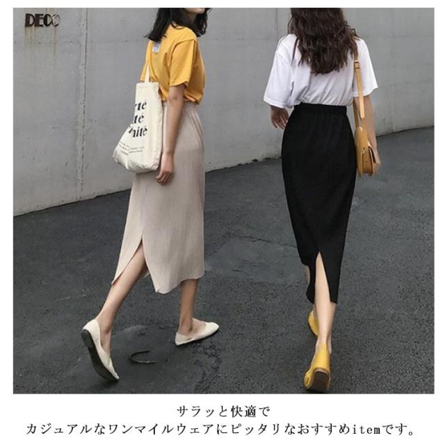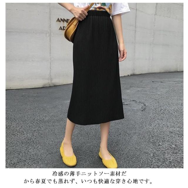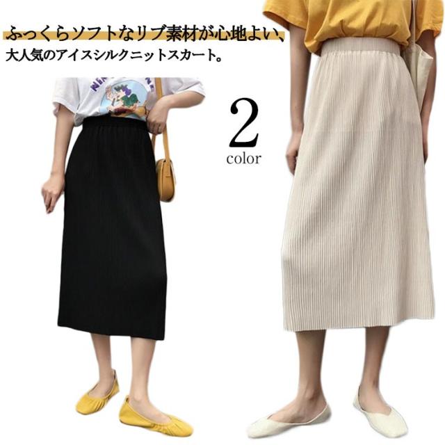 アイスシルク 夏用 ニットスカート 冷感 ロングスカート タイトスカート スカート レディース ボトムス リブ ウエストゴム ストレッチ バックスリット ロング丈 カジュアル 春夏 無地 送料無料