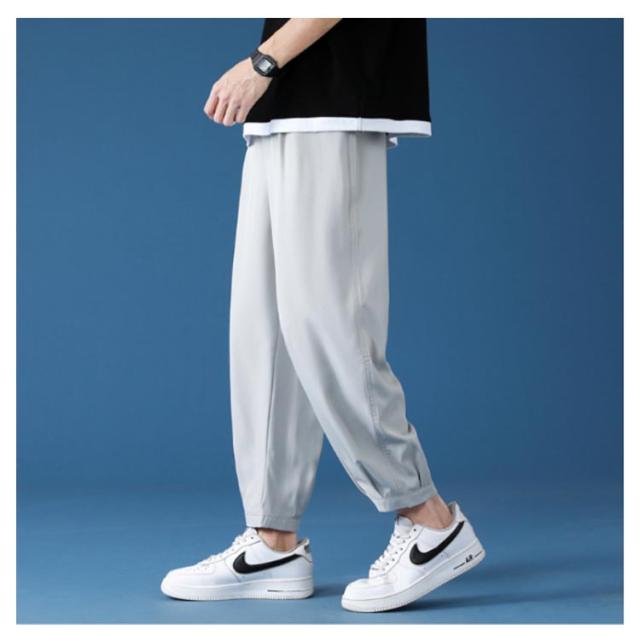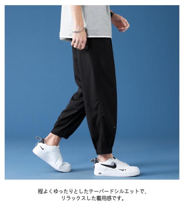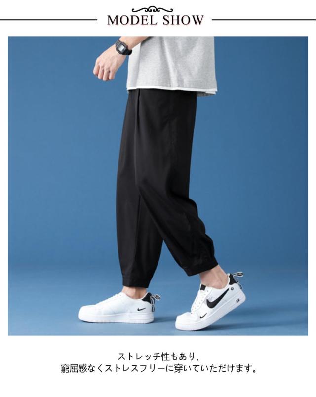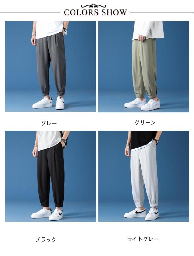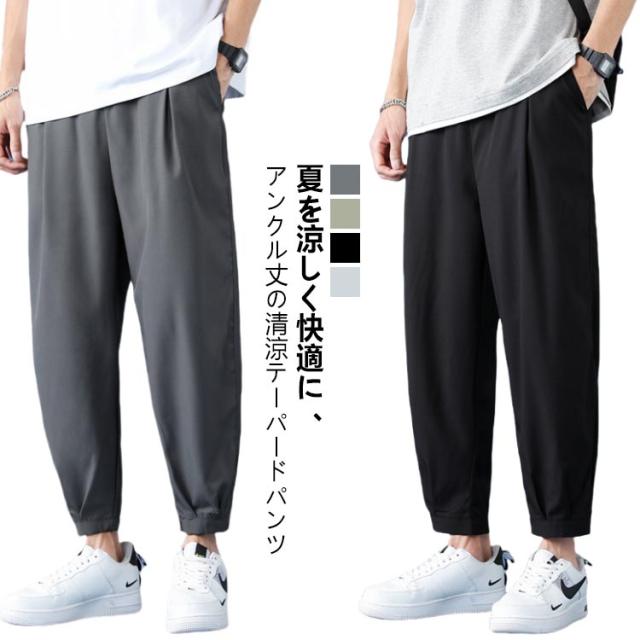 冷感 パンツ メンズ テーパードパンツ ストレッチ タック入り 速乾 アイスシルク 9分丈 クロップドパンツ イージーパンツ 涼しい ボトムス ズボン きれいめ おしゃれ 通勤 オフィスカジュアル 春 夏