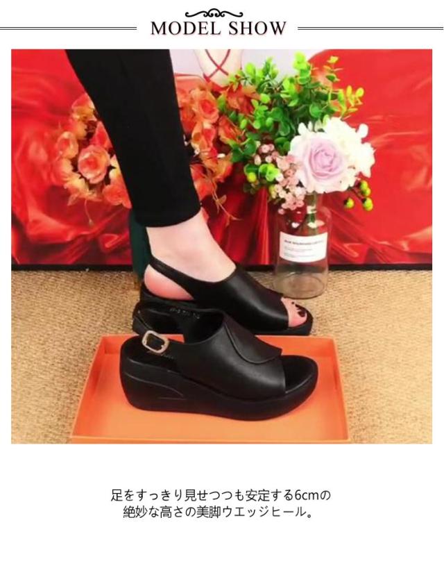 | ・疲れにくく歩きやすいオフィスサンダル ・足をすっきり見せつつも安定する6cmの絶妙な高さの美脚ウエッジヒール。 | |