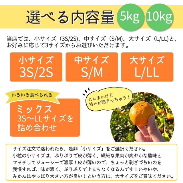 【高知を代表するブランド「山北みかん」】 柑橘類の王様「土佐文旦」で有名な土佐の高知!! 当店のあります高知市から、北東に約1時間ほど車を走らせると、高知県のみかん処「山北」地区です。 道路の両側、山合のいたるところに蜜柑の木が生い茂って蜜柑の一大産地といえる辺りに到着!みかんの時期になると道路沿いにみかんの無人販売やみかん狩りの看板!! この地域は、陽あたりよし、土壌よし、黒潮運ぶ太平洋からの風よしと、三拍子そろったみかん生育に最適の土地で、ここ山北は1855年(安政2年)から続くみかんの一大生産地です。 全国的なみかんの出荷は、まだまだ低いですが、高知の山北みかんは、味、香り、甘みと酸味が絶妙で、柑橘にうるさい地元高知では、みかんといえば絶対に「山北みかん」なんです! この美味しい「山北みかん」を全国に紹介したく、山北みかんの農家さんと産直契約をすることにより、流通経費を削減、また、市場を通さないから採れたての味をご賞味いただけます。 自然の地形を生かし、生産者さんの思いを込めて作られた「山北みかん」をどうぞお召し上がりください。 【高知県は農産物の宝庫】 高知県は、北は四国山脈、南は広い太平洋に面し、沖に流れる暖流黒潮の影響から、温暖で日照時間が多いという高知県の特徴を活かして、農業が盛んで「園芸王国」とよばれています。 日照時間と降雨量が全国トップクラス!雨量が全国的にも多いので、人には住みにくい気候でも野菜果物にとっては恵みの雨、強い日差しを浴びて野菜果物がぐんぐん育ちます! 今や全国的にその名を轟かせている清流四万十川、水質日本一にもなり「仁淀ブルー」で有名な仁淀川など、数多くの清流で知られています。川の上流には工場が少なく水質は奇麗で、森林面積が日本一の高知県は空気がとても綺麗! さらに、冬でも日照時間が長いので日中は暖かく、夜は放射冷却現象の影響にて朝晩が寒いので野菜果物はとても美味しい果実を実らせます! 当店は、高知市にあり、地元高知県の野菜果物のみ扱っています。強い南国の日差しをたっぷり浴びて育った高知発の果物やお野菜をどうぞご賞味ください! 【選べるサイズ】 当店では、小サイズ(3S/2S)、中サイズ(S/M)、大サイズ(L/LL)と、お好みに応じて3サイズからお選びいただけます。 色々なサイズを詰め合わせた「ミックス」は、皮が薄くブリプリでジューシーな小サイズから、やや大味ですが、食べやすい大サイズまでサイズフリーで入っていますので、いろんなお味を一度に楽しめます。老若男女、お年寄り様からお子様までご家族でお召し上がりください。 なお、訳あり商品(いわゆるB品)ではありません。当ショップ産直の山北みかんと同様に農家さんが採れたてのみかんを箱に詰めてくれています。 <サイズ選びに困ったら…> サイズ注文で迷われたら、是非「小サイズ」をご選択ください。小粒の小サイズは、ぷりぷりで皮が薄く、繊細な果肉が爽やかな酸味とマッチしてジューシーで濃厚!皮が薄いので、ちょっと剥ぎづらいのを我慢すれば、味が濃く、ぷりぷりで止まらなくなるんです!いやいや、みかんはやっぱり大きい方が良い!という方は、大サイズをご賞味くださいませ。 ■商品名:山北みかん ■生産地:高知県香南市香我美町山北 ■仕様(内容量):家庭用5kg、専用カラー箱 ■出荷につきまして ご注文を受けまして1〜5営業日を目安に順次出荷いたします。 お届け日のご指定はできません。※お時間帯のご指定のみお受けしております。 【9月からの初出荷とその後の品種につきまして】 9月末から出荷されますお蜜柑は、極早生(ごくわせ)といいまして、やや青みがかった状態での出荷となり、お客様の元に到着した段階でもやや青みがかった状態でお手元に届くことがあります。 みかん農家さんは、蜜柑の品種により生産時期をずらす事によって9月末から1月にかけて生産できるように収入を安定化させていますので、どうかご理解くださいませ。 当店は、採れたての状態でお届けいたしたいので、手元で黄色くせずに採れたてを出荷するようにみかん農家さんと契約しております。極早生の画像の状態が農家さんが出荷する前の状態(お色)となっております。 10月中頃以降は、「ゆら」→「わせ」→「おくて」という品種になってまいります。出来る限り採れたての状態で発送しておりますので、お客様には青みがかった状態で届くこともございます。ご理解くださいませ。 ■代金引換はお受けできません 決済システム上では代金引換が選択できますが、こちらの商品にはご利用いただけません。 ■同梱および、ご注文につきまして こちらの商品は、送料無料にて契約農家から発送いたします。「産地直送品」になりますので、他商品との同梱発送はお受けできません。 ご注文確認後に商品の手配を開始いたしますので、ご注文内容のご変更やキャンセルはお受けできませんので予めご了承くださいませ。 ■到着までの日数 発
