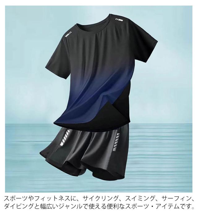 上下セット 水着 メンズ スポーツウェア ランニングウェア メンズ水着 速乾 セパレート 日焼け防止 スポーツ フィットネス 半袖 水陸両用 UVカット セット 体型カバー 男性 おしゃれ フィットネスウェア ビーチ 海 プール