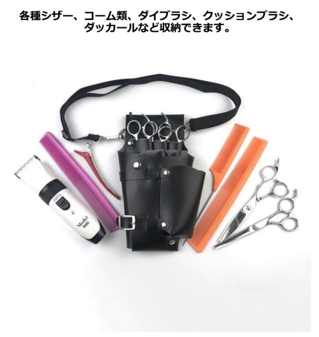 シザーケース 5丁 シザー 美容師 理容 理容師 散髪 ペット トリマー スタイリスト アシスタント はさみ ケース シザー ハサミ トリマー ポケット 腰 肩 軽量 PUレザー 収納ケース ツールバッグ ヘアカット トリマー プロ用 大容量 送料無料