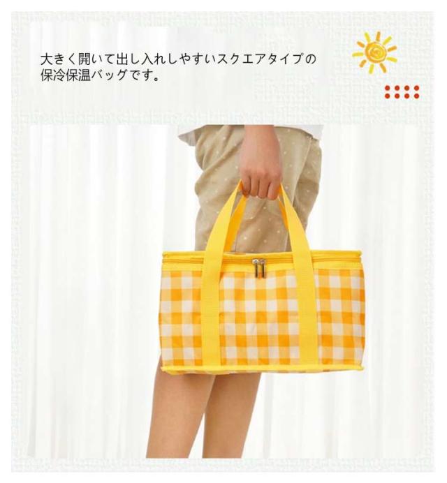保冷バッグ 大容量 ファスナー 保温 保冷 手提げバッグ 折りたたみ ボックス アイスバッグ スクエアバッグ 海水浴 キャンプ チェック柄 かわいい