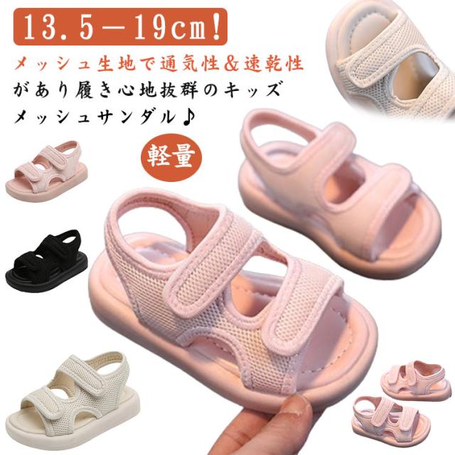 | 13.5−19cm!メッシュ生地で通気性&速乾性があり履き心地抜群のキッズメッシュサンダル♪ 普段のお出かけはもちろんの事、夏のレジャーなどにも大活躍なアイテム! 脱ぎ履きしやすいマジックテープタイプ。 ソール部分が柔らかくクッション性があり、軽量で歩きやすい仕様になっています。 滑りにくいアウトソールで歩行のサポートができます! | |