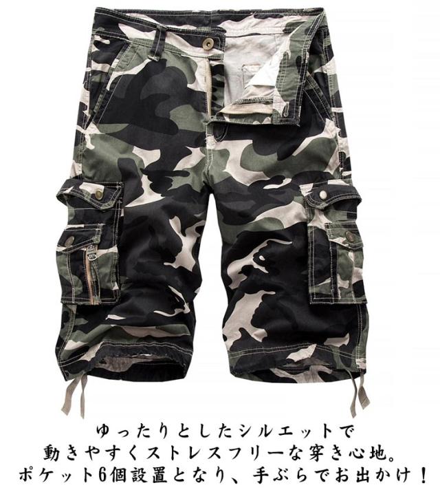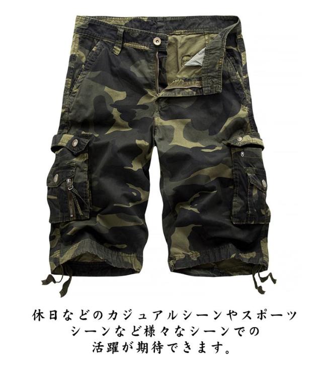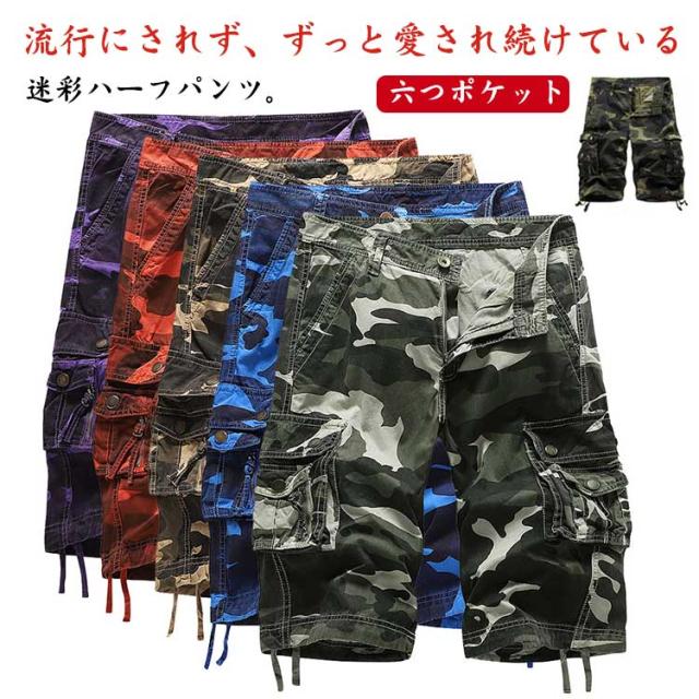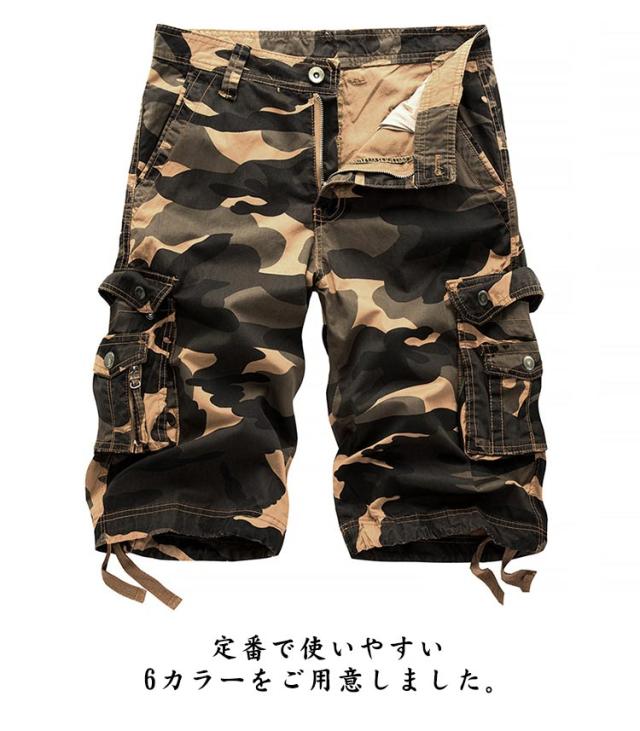 カーゴパンツ 迷彩 ハーフパンツ メンズ カーゴハーフパンツ 膝丈 ショートパンツ 半ズボン ミリタリーパンツ 七分丈 ストリート カモフラ ズボン パンツ B系 ダンス 大きサイズ 六つポケット