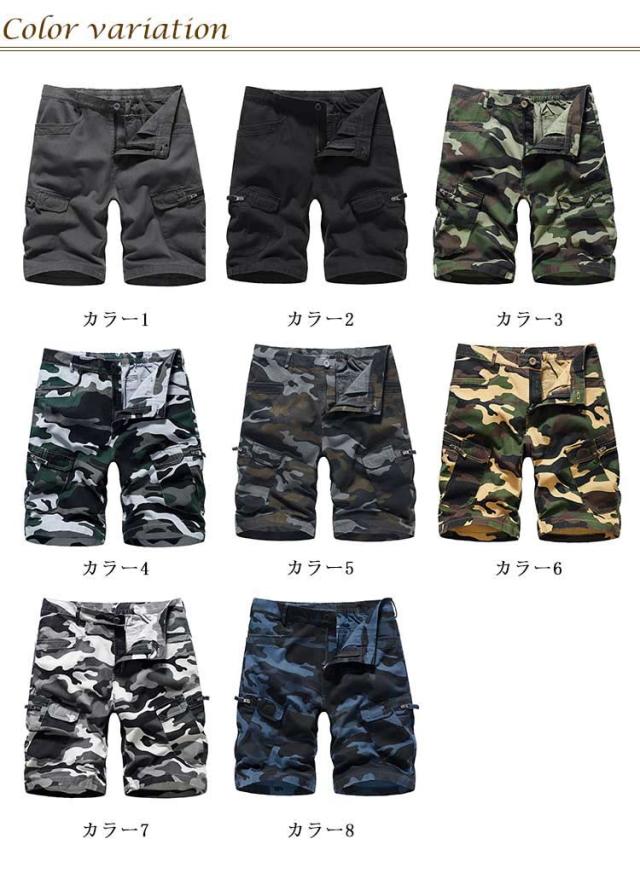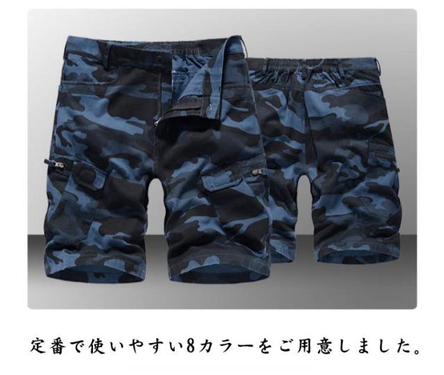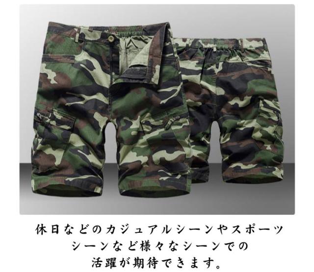 カーゴパンツ 迷彩 ハーフパンツ メンズ カーゴハーフパンツ 膝丈 ショートパンツ 半ズボン ミリタリーパンツ 五分丈 ストリート カモフラ ズボン パンツ B系 ダンス 大きサイズ ファスナーポケット