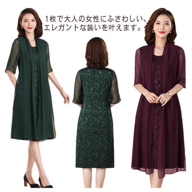 結婚式 親族 フォーマルドレス 50代 ミセス シルク フェイクレイヤード 母親 ドレス フォーマル ワンピース 結婚式ドレス 洋装 服装 五分袖 ジャカード 花柄 顔合わせ 夏 上品 大人 エレガント 大きいサイズ 入学式 演奏会 体型カバー