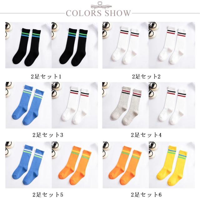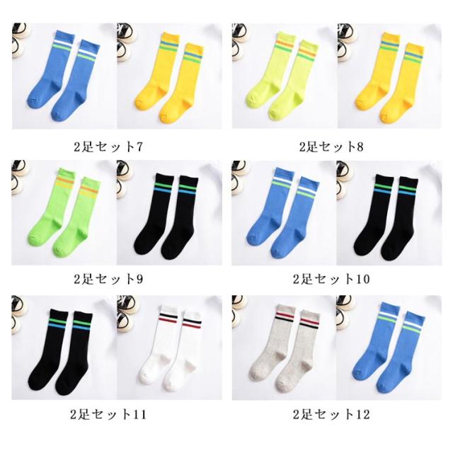 ソックス 2足セット ライン ハイソックス 春秋 キッズ 女の子 男の子 靴下 ソックス 子供靴下 ロング丈 ボーダーソックス ボーダータイツ 子ども ベビー ジュニア 子供用 伸縮性 綿 コットン 柔らかい 通気性 通園 通学 ダンス衣装 発表会 オールシーズン 送料無料