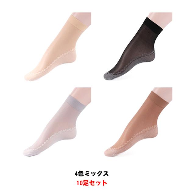 10足セット シースルーソックス 靴下 夏用 レディース ストッキング くつ下 ソックス 女性 婦人 透け ショートソックス シアーソックス 大人 可愛い おしゃれ 女子力 素足感覚 薄手 脱げない 滑り止め 伸縮性 綿 通気性 黒