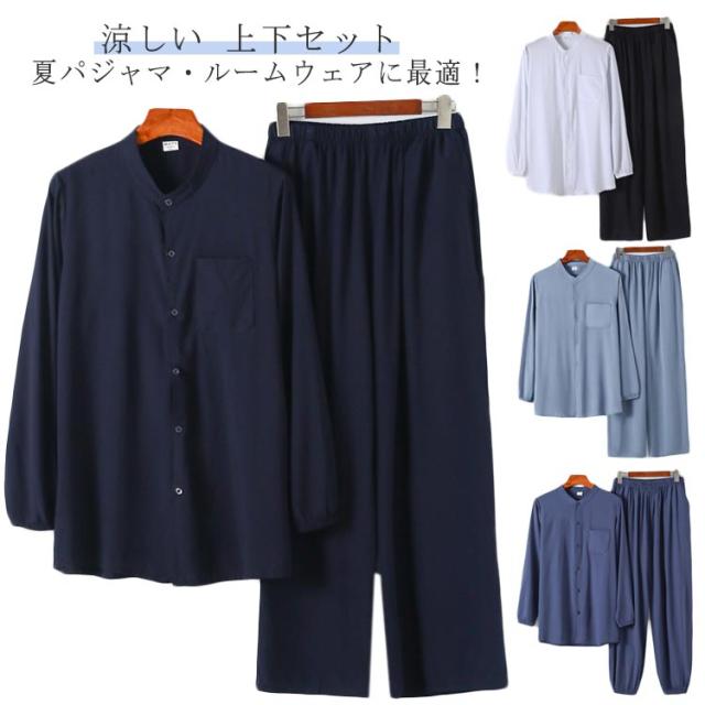 父の日 ギフト プレゼント メンズ パジャマ ルームウェア 涼しい 甚平 半袖 長袖 ロングパンツ バンドカラー 前開き 部屋着 寝巻き 入院 浴衣 ゆかた お祭り 彼氏 父 春 夏