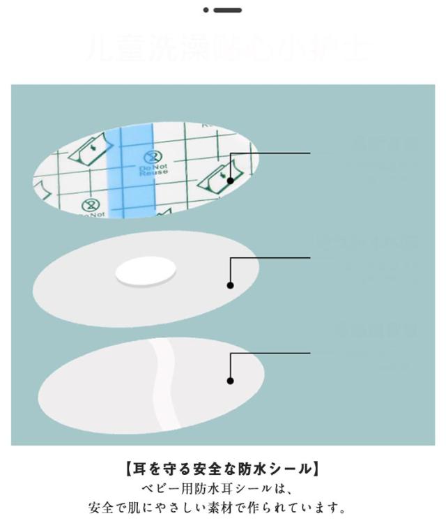 | 水から耳を守る!イヤーキャップ 120枚入 【耳を守る安全な防水シール】ベビー用防水耳シールは、安全で肌にやさしい素材で作られています。 【簡単に使える設計】ステッカーは水に触れる前に簡単にはがすことができます。引き裂きやすいセグメント化されたデザインで、装着後は耳の周りを確認してください。隙間がなければ安心して入浴することができます。 【安心と便利を提供する】新生児のデリケートなお肌にもやさしく、使いやすい設計です。お風呂や水遊びが不安だった方も安心してお使いいただけます。 【多目的な使用方法】ベビー用防水イヤーステッカーは様々な用途に使えます。屋内外での水泳、入浴、シャンプー、ヘアカットなど、さまざまな場面で活躍します。 【大容量の120枚入り】水から耳を守る!大容量の120枚入りで、衛生的で使い捨て可能です。家庭用はもちろん、業務用としても最適です! | |