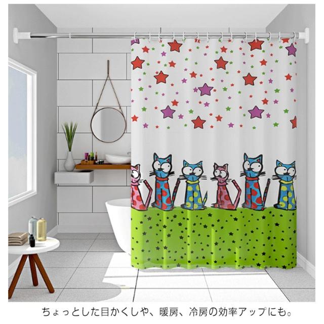防カビ 冷気遮断 シャワーカーテン バスカーテン カーテンリング付き 防水 お風呂カーテン 目隠し 間仕切り カーテン 浴室 ユニットバス お風呂 洗面所 送料無料 取り付け簡単 断熱 北欧風 保温カーテン 脱衣所 バスルーム 水滴 猫 可愛い 撥水加工