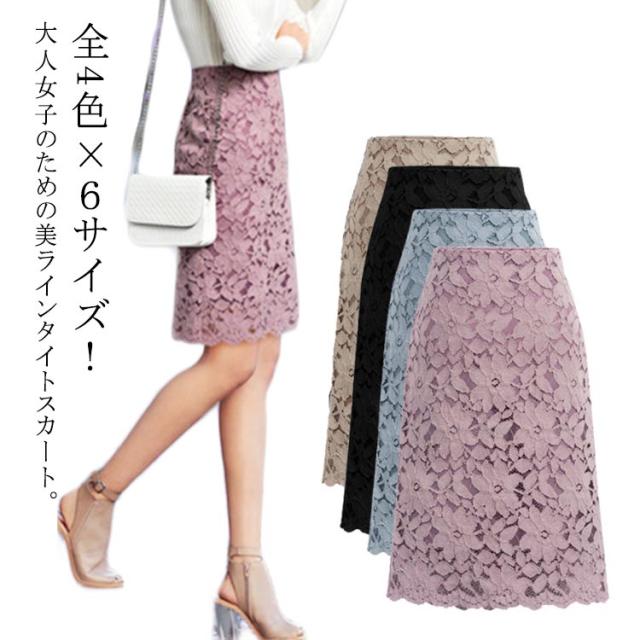 タイトスカート ペンシルスカート 総レーススカート 透けレース レディース 華やか ひざ丈スカート 美脚 大人 春夏 膝丈 ショート丈 花柄 ひざ丈 フラワー フォーマル キレイめ 大きサイズ 春 夏