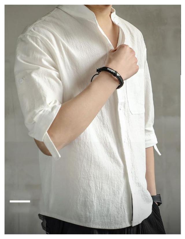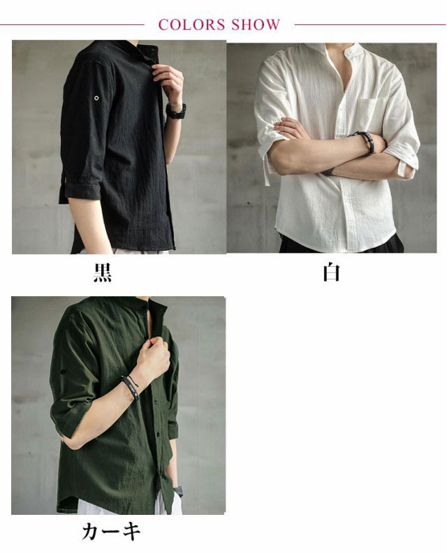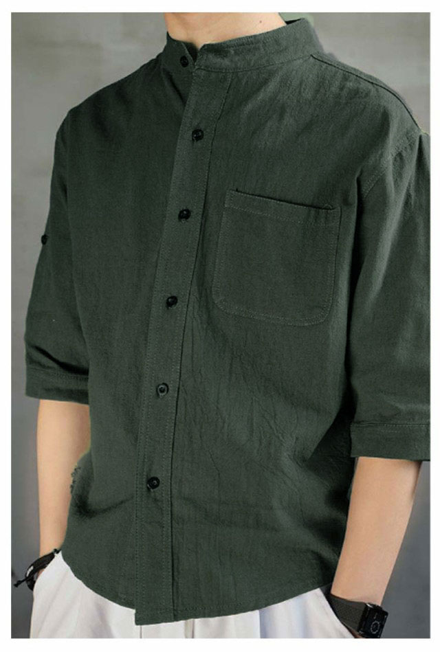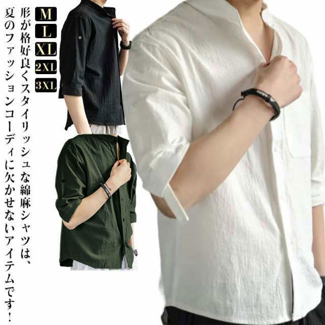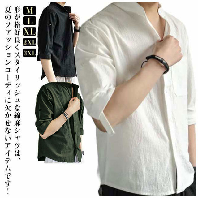 シャツ メンズ 七分袖 夏 綿麻風 無地 おしゃれ 夏服 薄手 カジュアルシャツ ワイシャツ リネンシャツ 半袖 立ち襟 スリム 春服 シンプル 涼しい 通気 軽い 快適 薄手 カジュアル ビジネス おしゃれ 無地 春夏 窮屈感ゼロ 速乾 通気吸湿