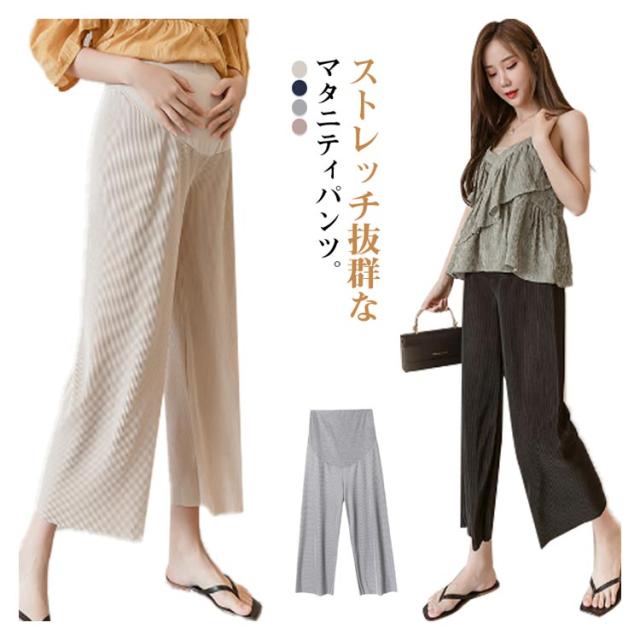接触冷感 マタニティパンツ ワイドパンツ サマーパンツ レディース ロングパンツ 妊婦服 リブ ストレッチ ガウチョパンツ ガウチョ ウエスト調整 薄手 美脚 脚長 マタニティウエア ボトムス 妊娠 産前 産後 ルームウェア 部屋着 夏 送料無料