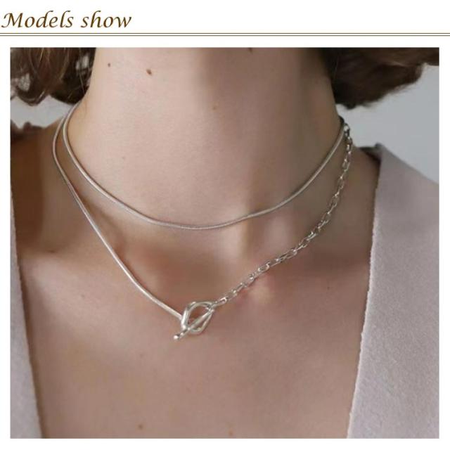 ネックレス チェーン レディース オーバル ロング ネックレス シンプル 金属 スネーク ロール チェーン シルバー 送料無料