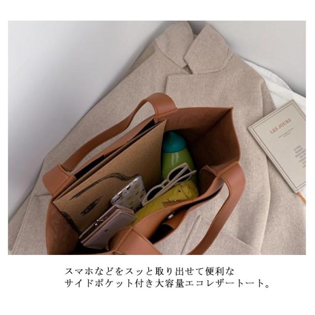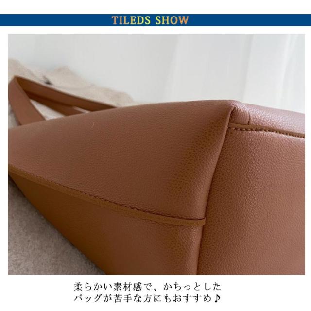 | ・コンパクトな見た目ながら、A4も収納できる優秀トート ・スマホなどをスッと取り出せて便利なサイドポケット付き大容量エコレザートート。 ・ビジネスシーンやフォーマルにも使えて便利なバッグ。 ・柔らかい素材感で、かちっとしたバッグが苦手な方にもおすすめ♪ | |