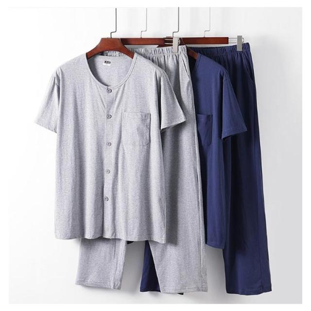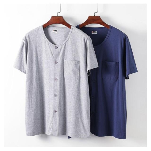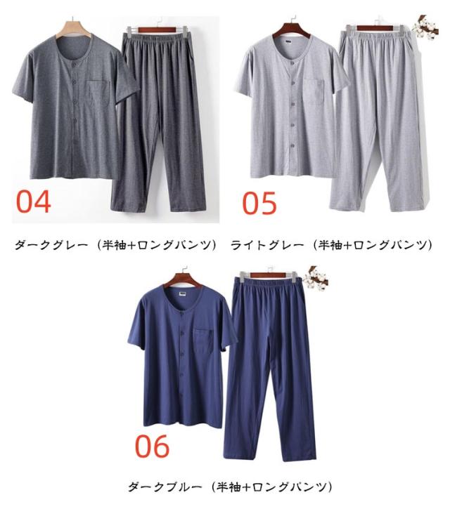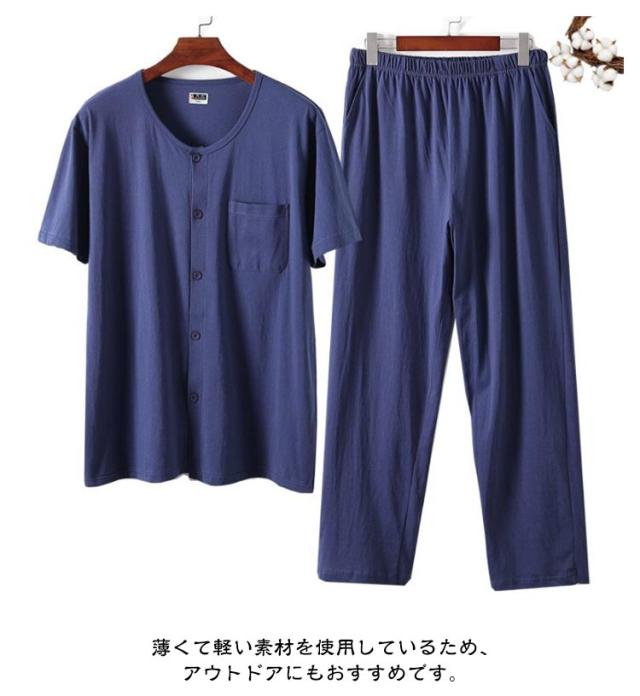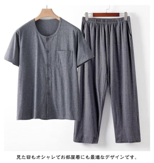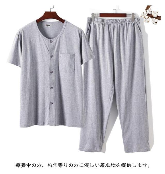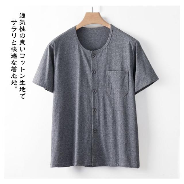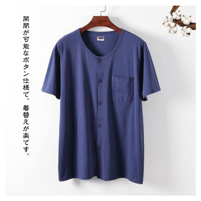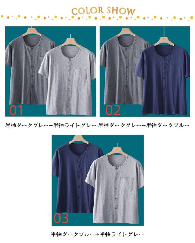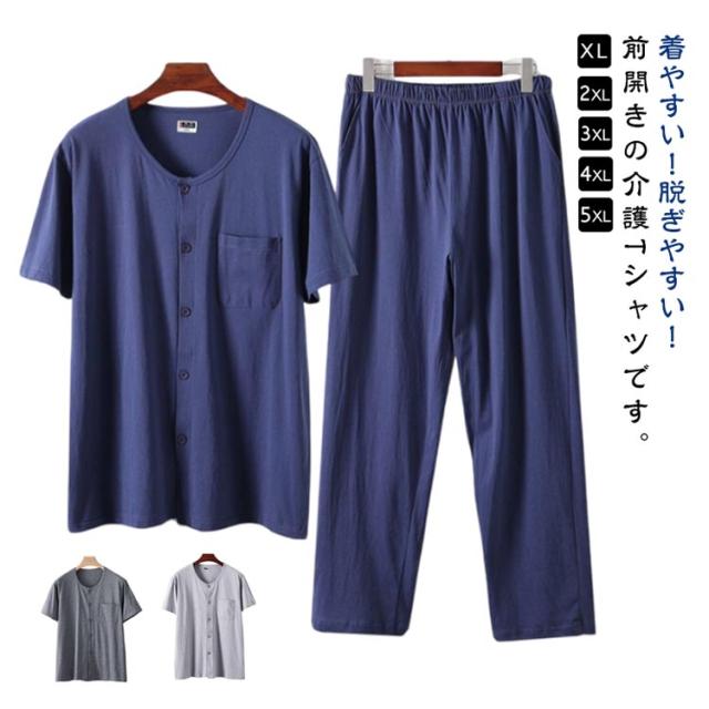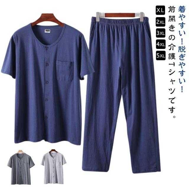 2点セット 前開き インナーシャツ メンズ 半袖 トップス インナー Uネック Tシャツ クールネック ロングパンツ パジャマ ルームウェア 下着 綿 肌着 無地 吸汗速乾 入院 手術 介護用 部屋着 快適 ゆったり 男性用 大きいサイズ 送料無料 XL-5XL