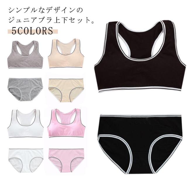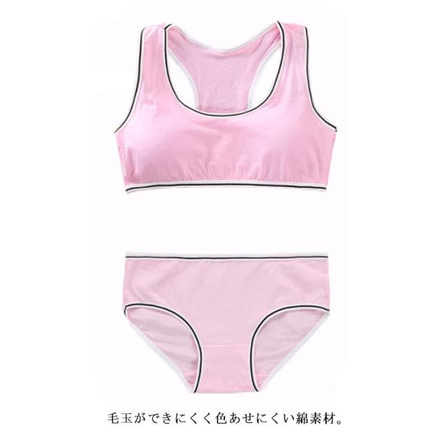 ジュニアブラ キッズブラ コットンインナー 女の子 子供 綿 下着 ブラトップ 上下セット セットアップ コットン 下着セット 取り外し可能カップ付き スポーツブラ ジュニア ファーストブラ ハーフトップ キッズ 小学生 中学生 高校生 かわいい 無地 送料無料