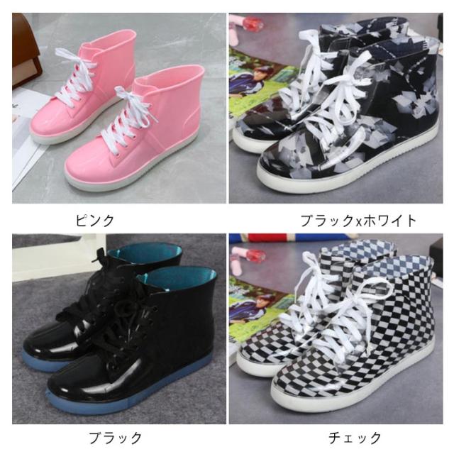 ハイカット レインブーツ 防水 レインスニーカー 紐靴 撥水 靴 レディース 雨靴 レインシューズ かっこいい 歩きやすい 幅広 レインブーツ かわいい 長靴 おしゃれ 歩きやすい 雨 滑らない 軽量 通勤 通学 ショート