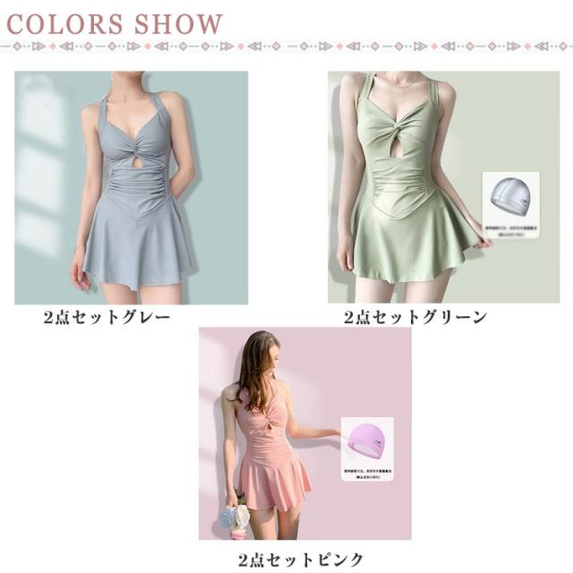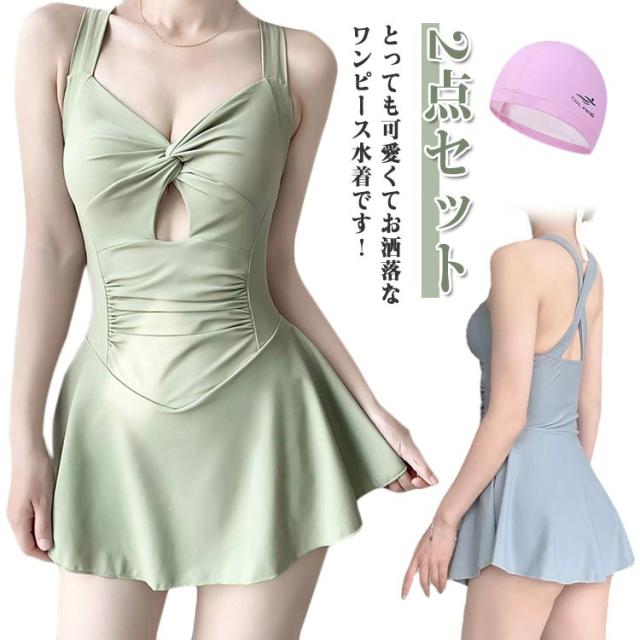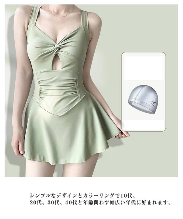 レディース 水着 2点セット ワンピース 水泳帽付き 無地 オールインワン 大きい 大人用 女性 ママ用 海 プール スポーツ 大人 スイムウエア レディース 春 夏 20/30/40代 ママ水着 きれいめ 体型カバー 水着ワンピース オトナ女子 お洒落 セクシー