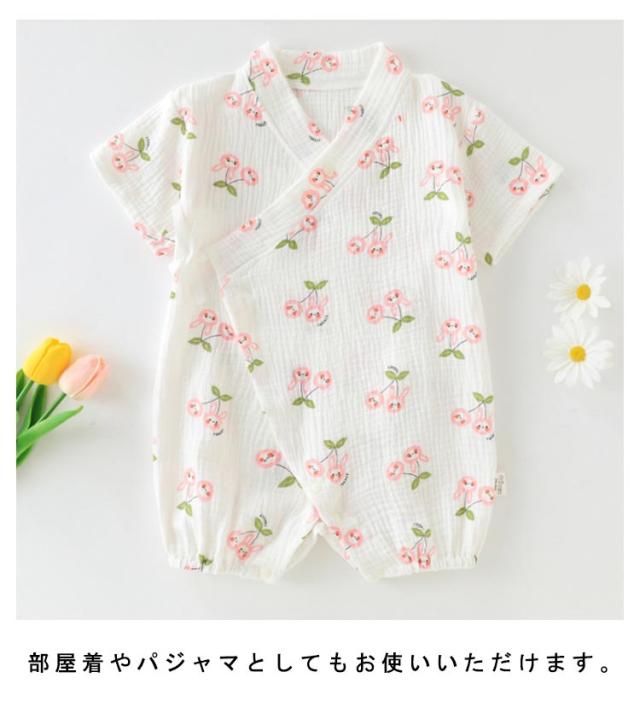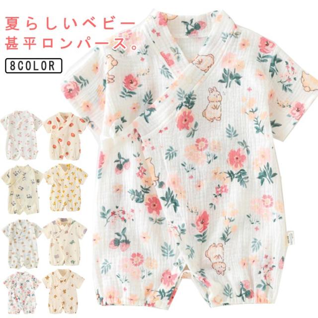 ベビー甚平ロンパース 赤ちゃん ショートオール ダブルガーゼ コットン綿 赤ちゃん 甚平オール 浴衣 キッズ 半袖 じんぺい ベビー服 パジャマ 新生児 夏物 お宮参り 女の子 男の子 可愛い お誕生日 退院 プレゼント 記念写真撮影 ギフト パーティー 送料無料
