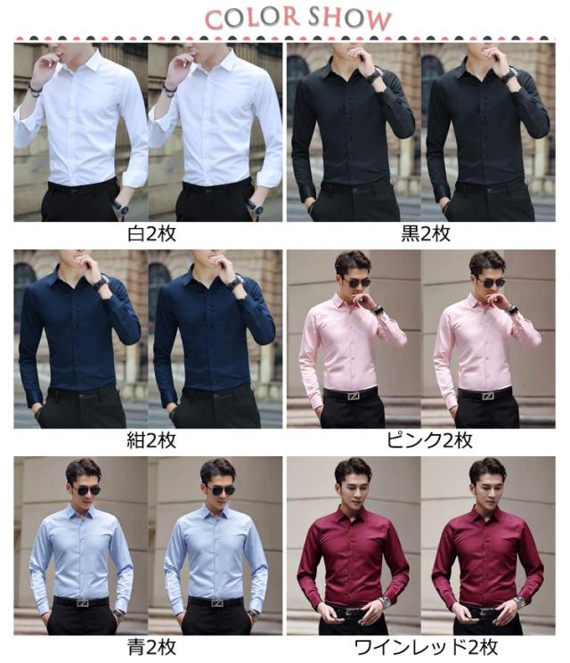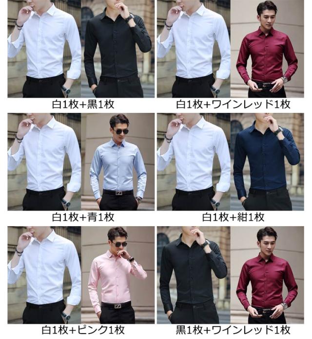 ワイシャツ 長袖 メンズ シャツ ビジネス Yシャツ 2枚 ワインカラー シャツ レギュラーカラー ワイシャツ スリム 細身 形態安定 ノーアイロン イージーケア ドレスシャツ カッターシャツ スーツ インナー 無地 おしゃれ 白 黒 ネイビー 春 夏 秋 父の日 送料無料